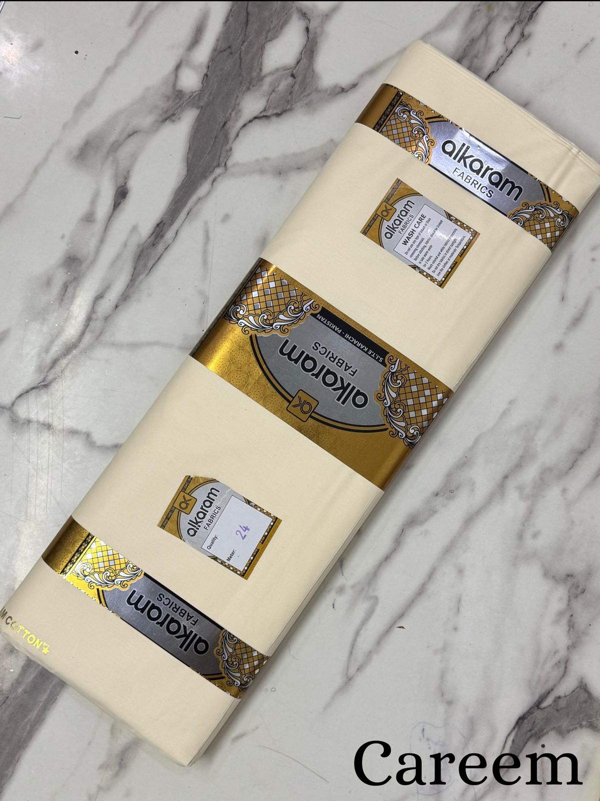 Reflect pure grace with Al Karamcotton fabric- a premium class pure cotton blend made of 100% breathable fabric. It gives off a slightly silky textured finish to make you look elegantly sophisticated as you get it styled for the summer season.